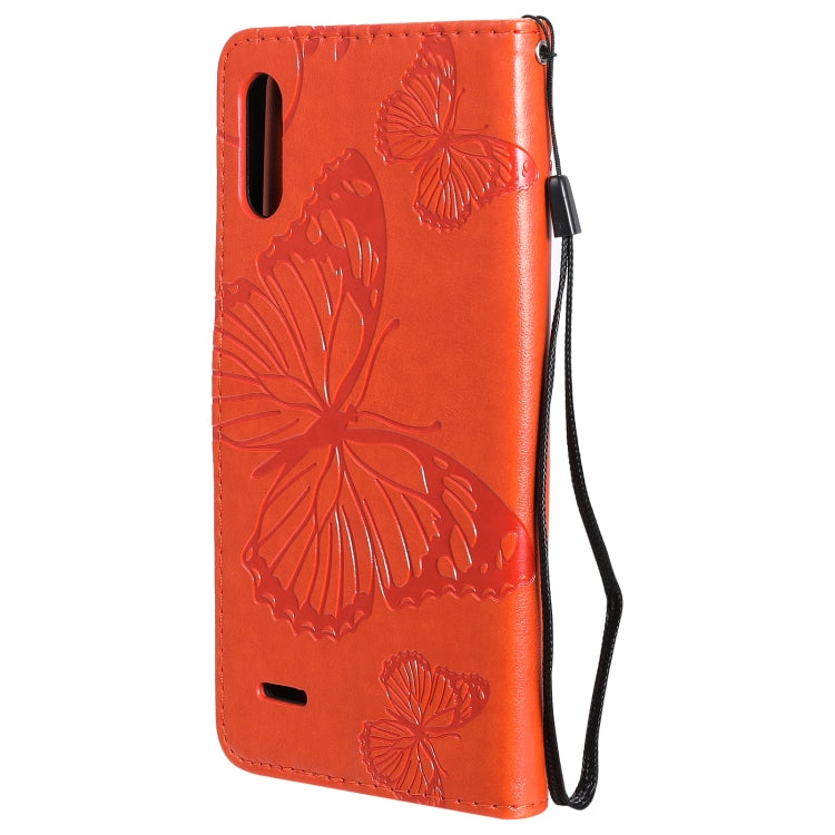 Funda de cuero con tapa horizontal para LG K22 / K22 Plus con patrón 3D mariposas, tarjetero y billetera (Naranja)