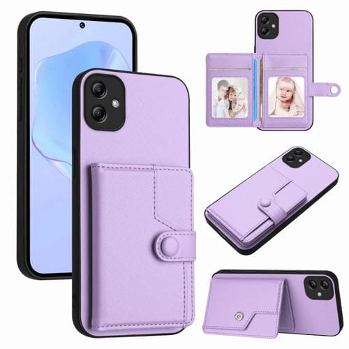 Funda Antirrobo Rfid para Samsung Galaxy A04E con Botón y Tarjetero (Morado)
