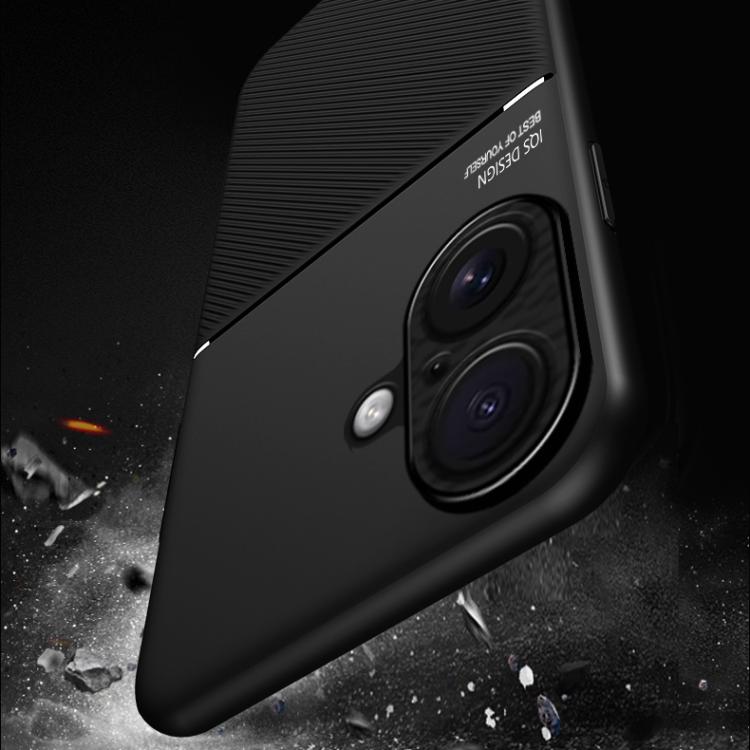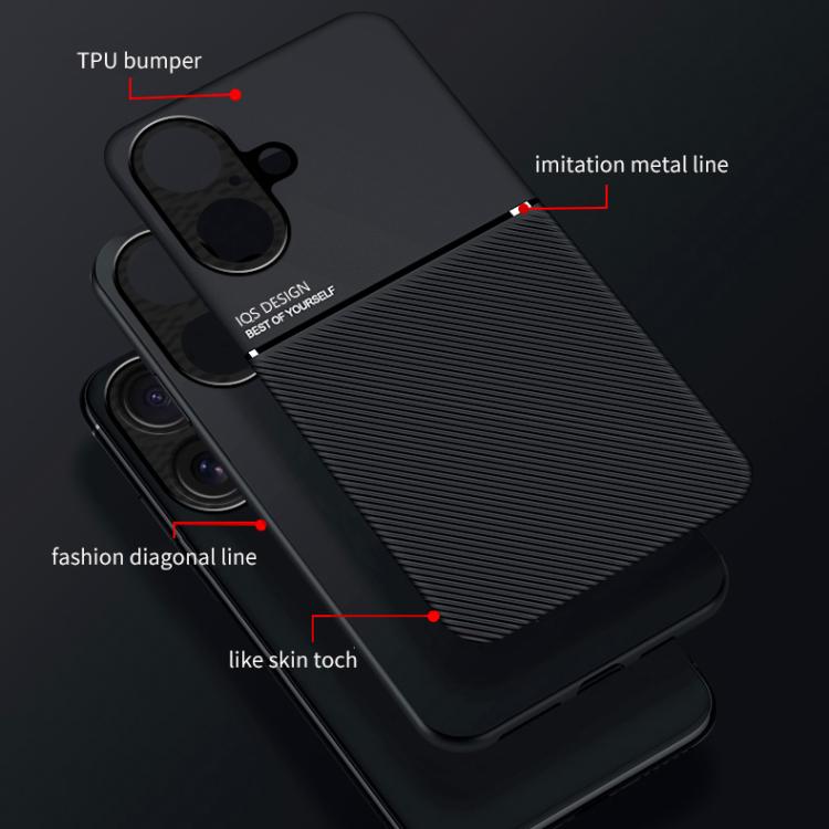 Funda clásica de PC + TPU con diseño de tira inclinable y granulado para iPhone 17 (negro)