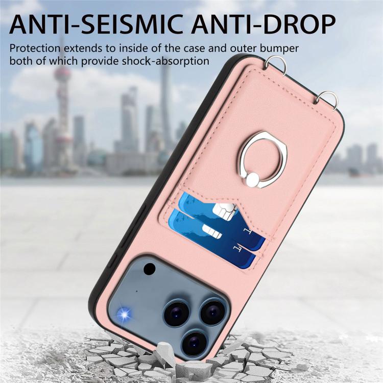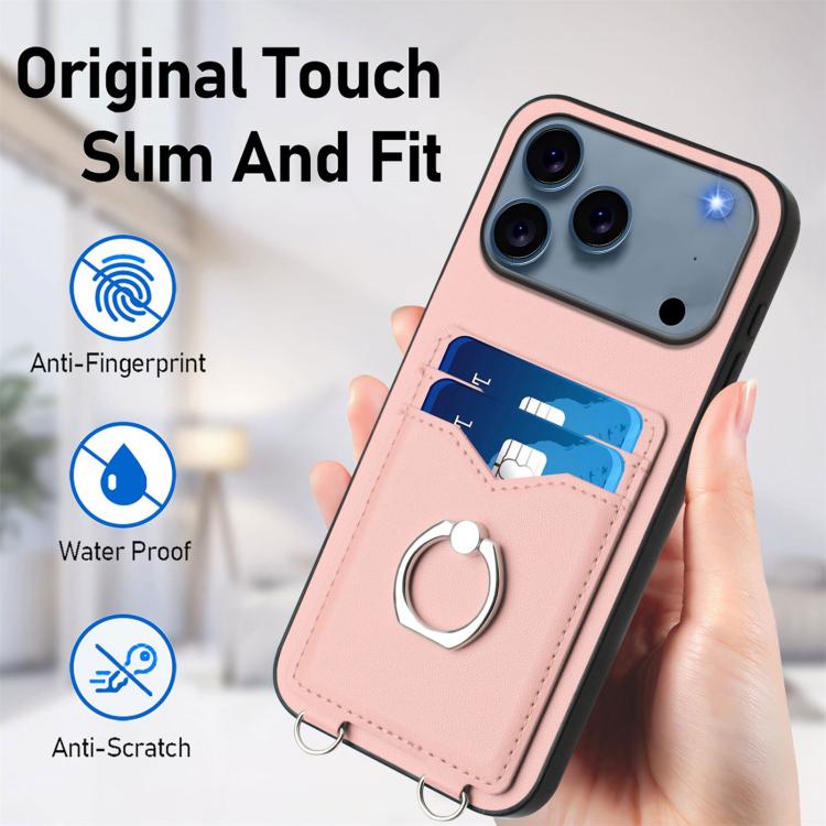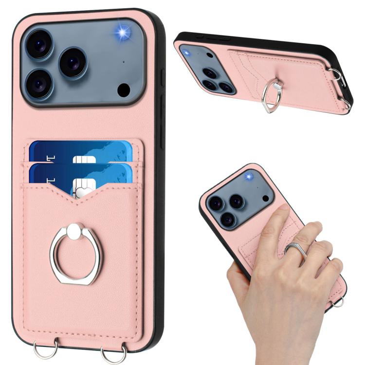 Funda cruzada con anilla y tarjetero para iPhone 17 Pro Max R20 (rosa)