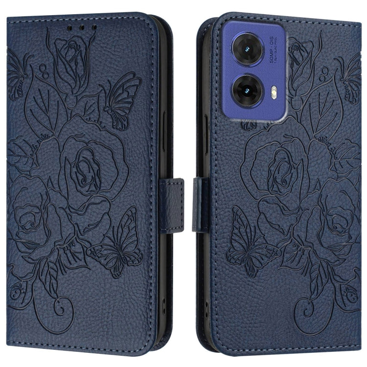 Funda de Cuero Antirrobo con RFID para Motorola Moto G85 5G con Relieve (Azul Oscuro)