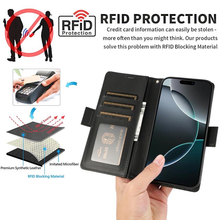 7. Función de bloqueo RFID: Diseñado con tecnología de bloqueo RFID que puede bloquear las señales RFID y proteger la información personal de escáneres no autorizados.