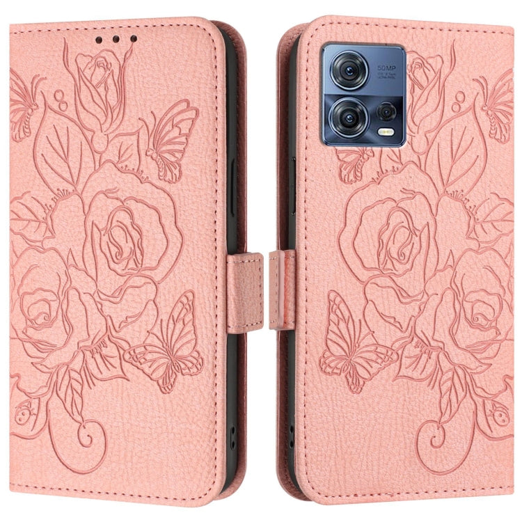 Funda de Cuero Antirrobo RFID con Relieve para Motorola Edge 30 Fusion (Rosa)