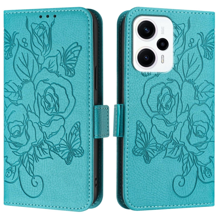 Funda de Cuero Antirrobo Rfid con Relieve Rosa para Redmi Note 11T Pro+ / Note 12T Pro / K50I (Azul Claro)