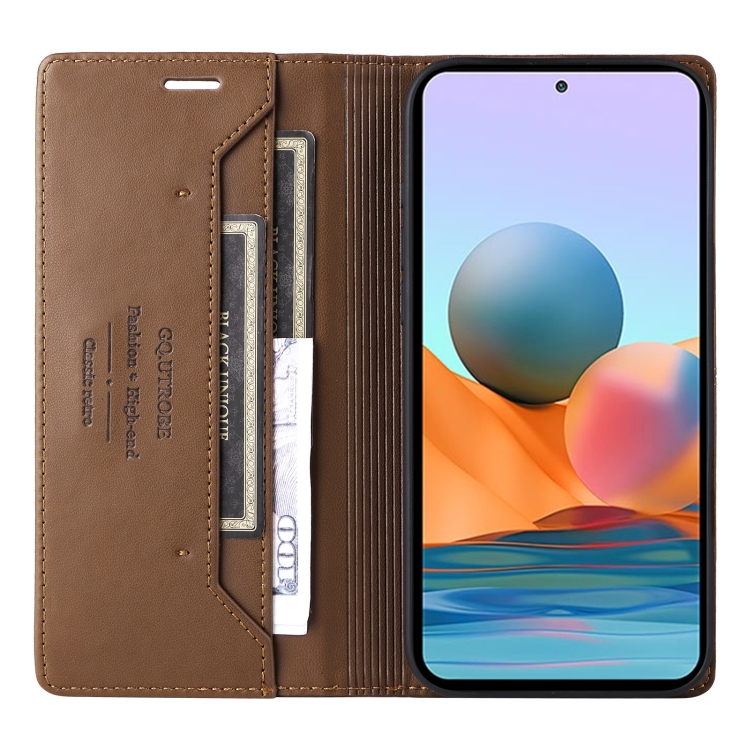 Funda de Cuero Antirrobo Rfid Gqutrobe G01 para Redmi Note 10 Pro 4G (Marrón)