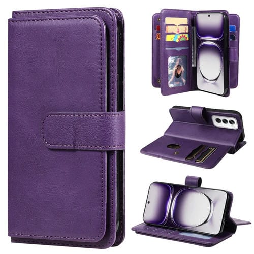 Funda de Cuero con 10 Ranuras para Tarjetas y Billetera Multifunción Global para Oppo Reno12 5G (Violeta)