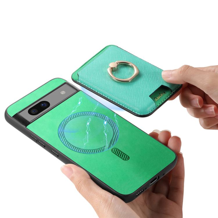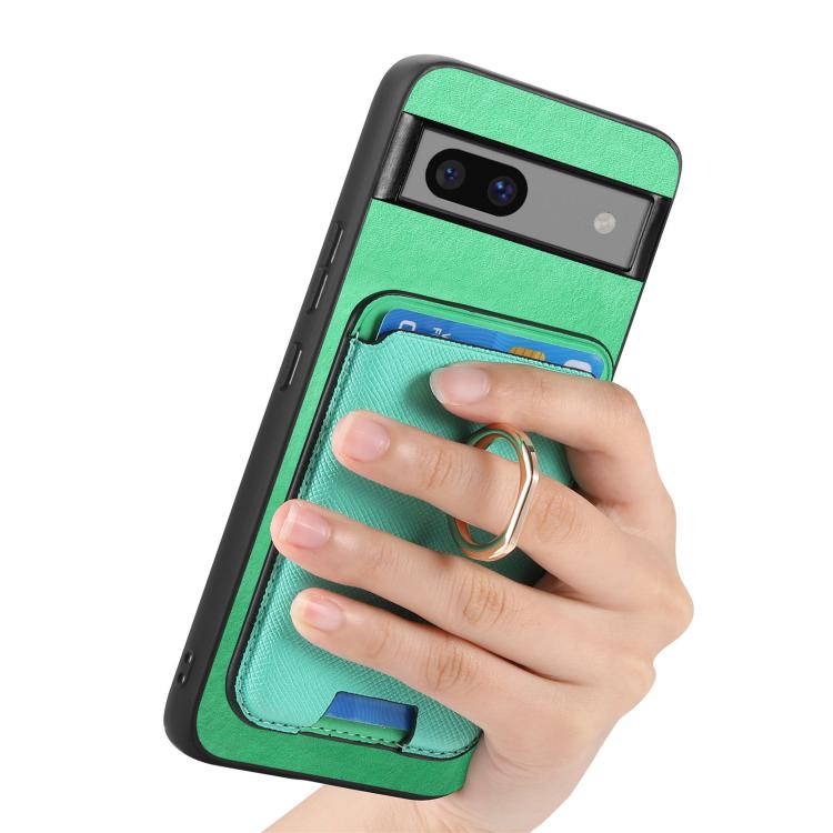 Funda de Cuero con Anillo Cruzado Retro para Google Pixel 7 con Ranuras para Tarjetas (Verde)