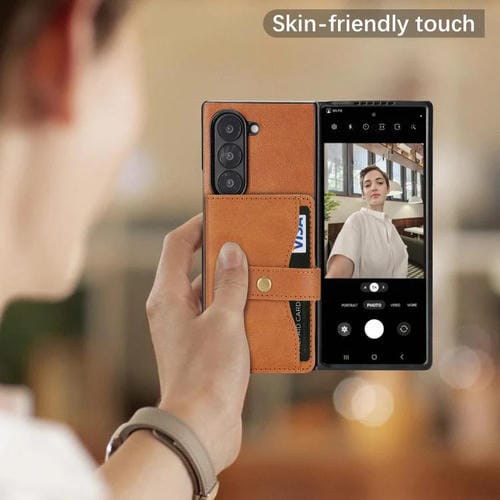Funda de cuero con anillo MagSafe y botón magnético Kalebol para Samsung Galaxy Z Fold6 (marrón)