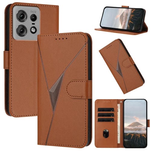 Funda de Cuero con Cierre de Hebilla y Diseño Triangular para Motorola Edge 50 Pro (Marrón)