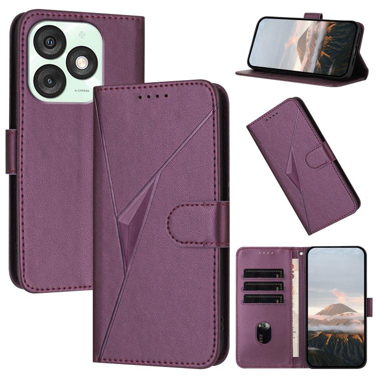 Funda de Cuero Itel A50 con Cierre de Hebilla y Diseño Triangular (Morado Oscuro)