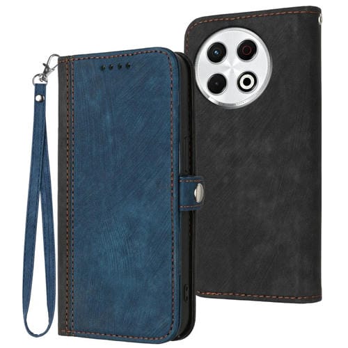 Funda de Cuero para Tecno Spark 30 Pro 4G con Correa de Mano y Hebilla Lateral Doble (Azul Real)