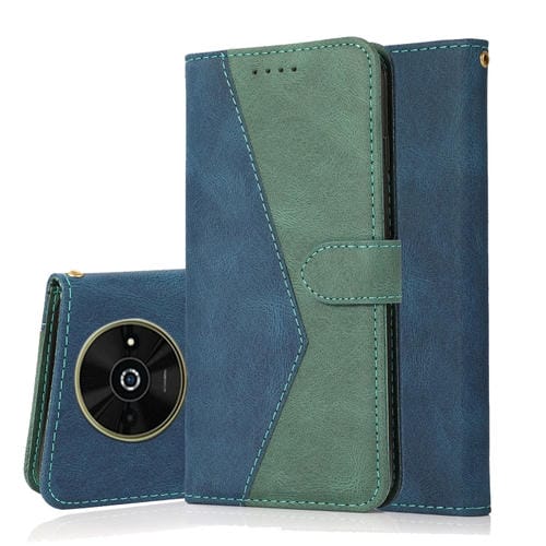 Funda de Cuero con Costuras de Dos Colores para Teléfono Xiaomi Poco C61 (Azul y Verde)