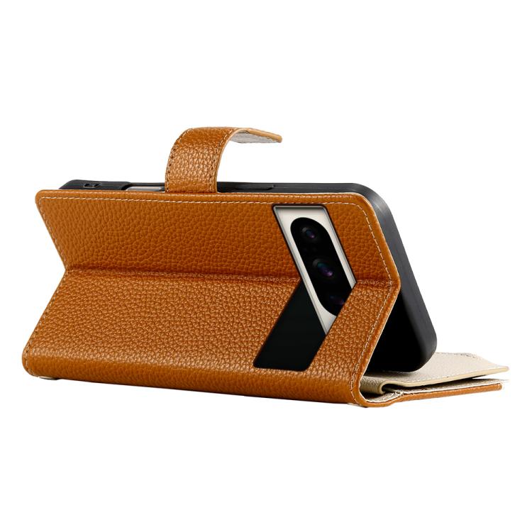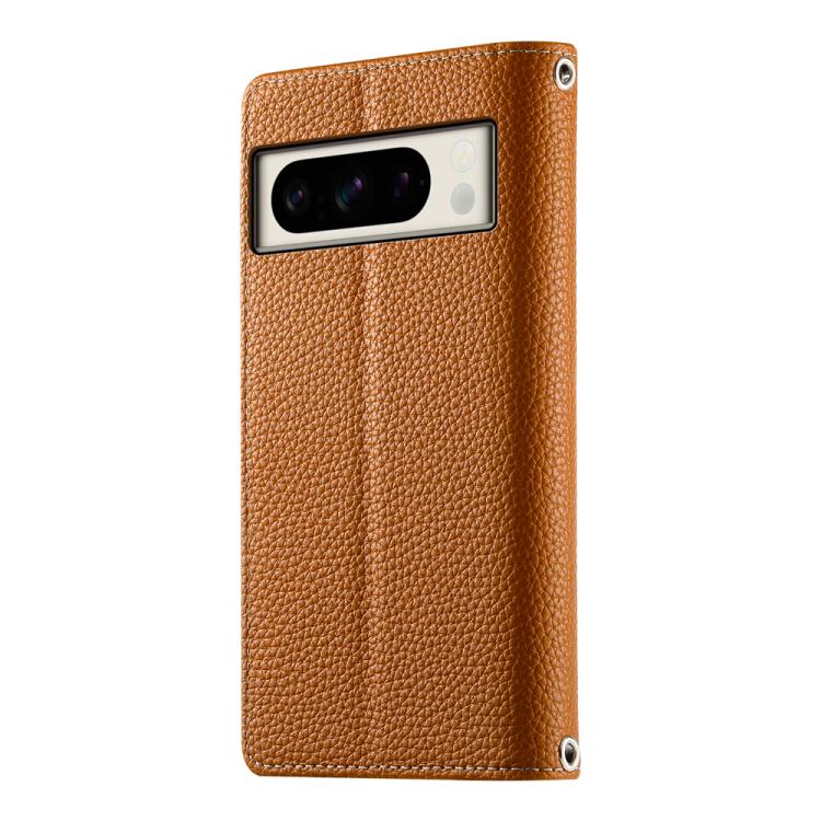 Funda de cuero con cremallera para Google Pixel 8 Pro, con múltiples tarjetas, costuras y correa corta (marrón)