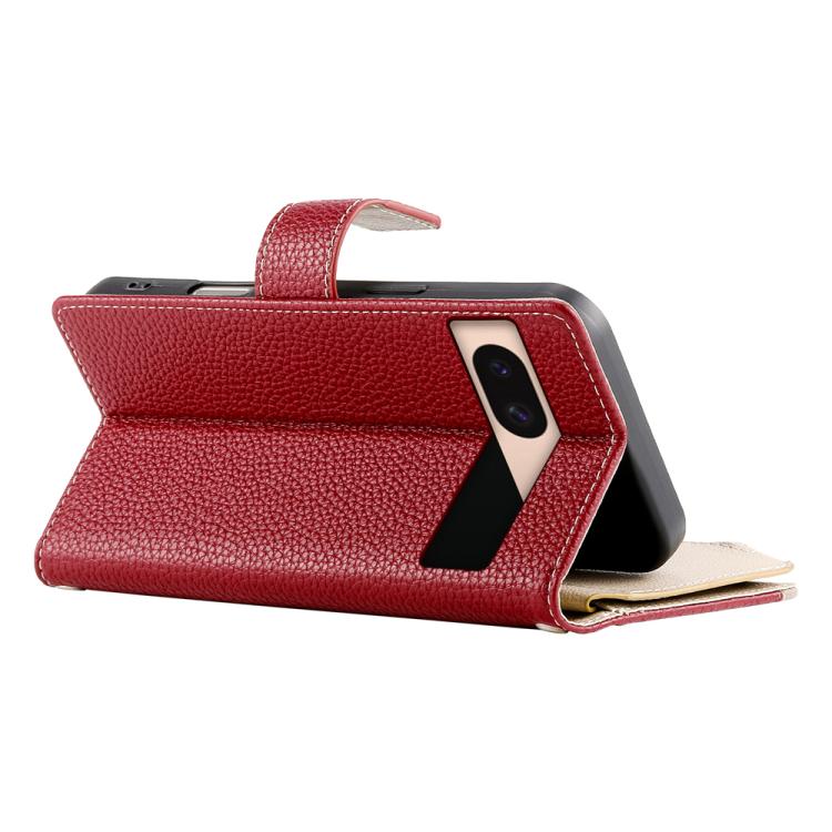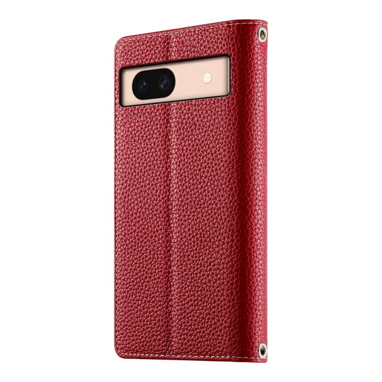 Funda de cuero con cremallera para Google Pixel 8a, con múltiples tarjetas y costuras, con correa corta (roja)