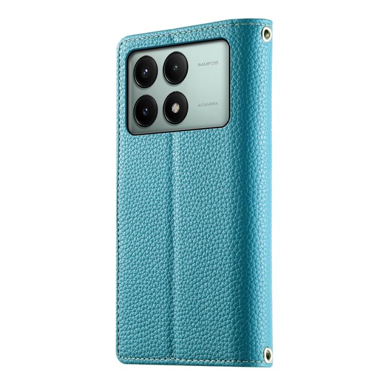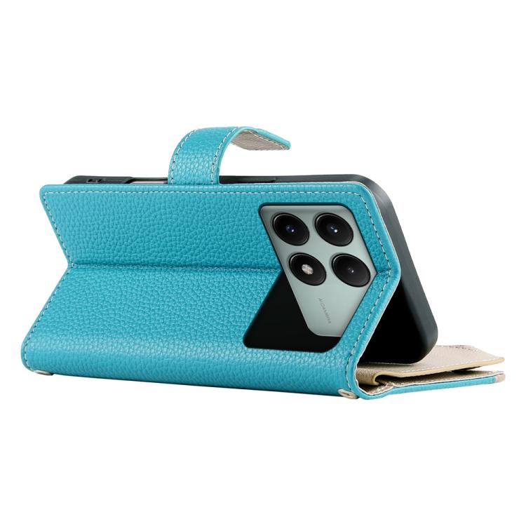 Funda de cuero con cremallera para Redmi K70E y Xiaomi Poco X6 Pro, con costuras, múltiples tarjetas y correa corta (azul)