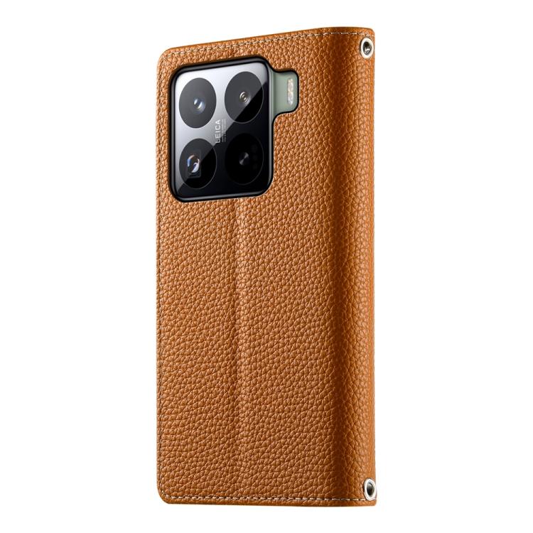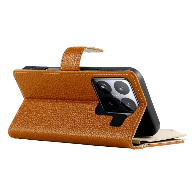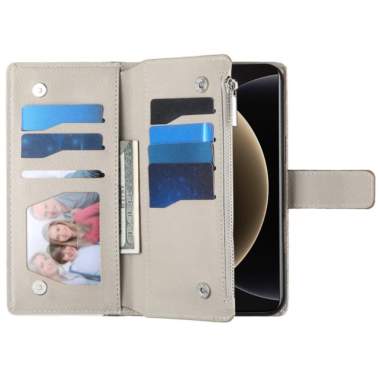 Funda de cuero con cremallera para Xiaomi 15 Pro, con múltiples tarjetas y costuras, con correa corta (marrón)