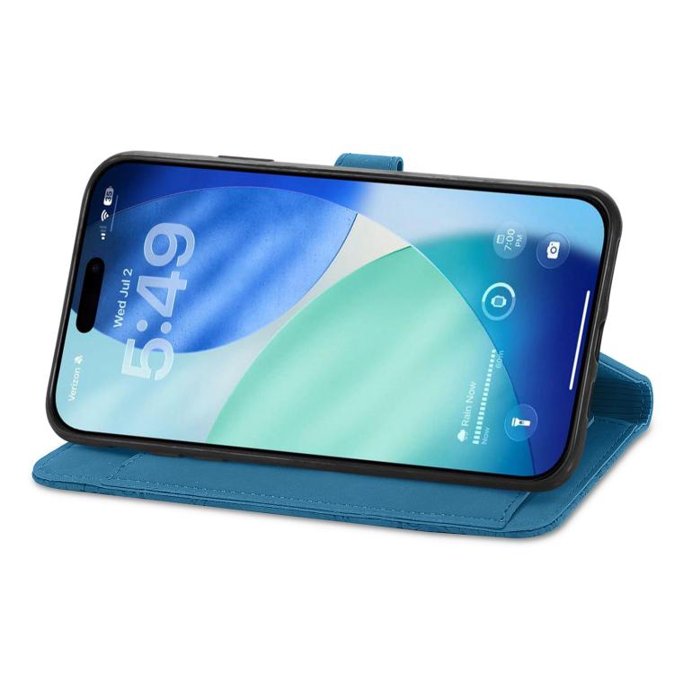 Funda de cuero con cremallera y diseño floral en relieve para iPhone 17 Pro (azul)