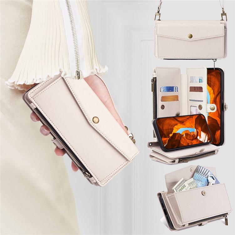 Funda de cuero con cremallera y hebilla lateral para Xiaomi Civi 5 Pro 5G (blanca)