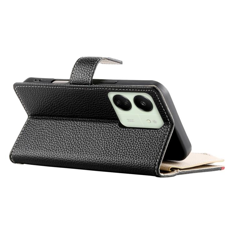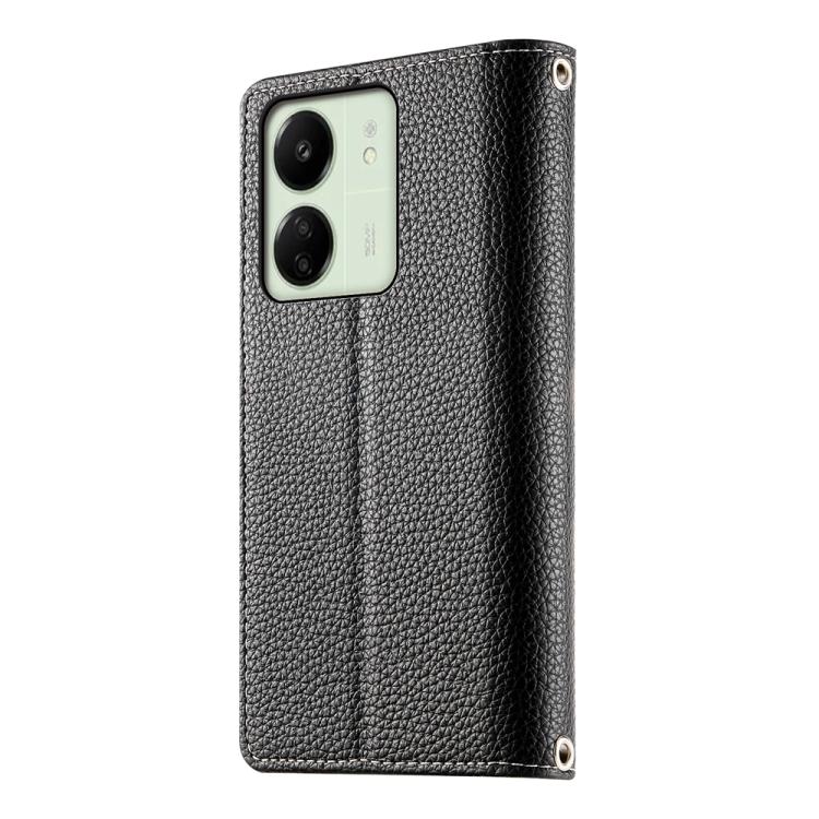 Funda de cuero con cremallera y múltiples tarjetas para Redmi 13C 4G / 5G / 13R / Xiaomi Poco C65 (negro)