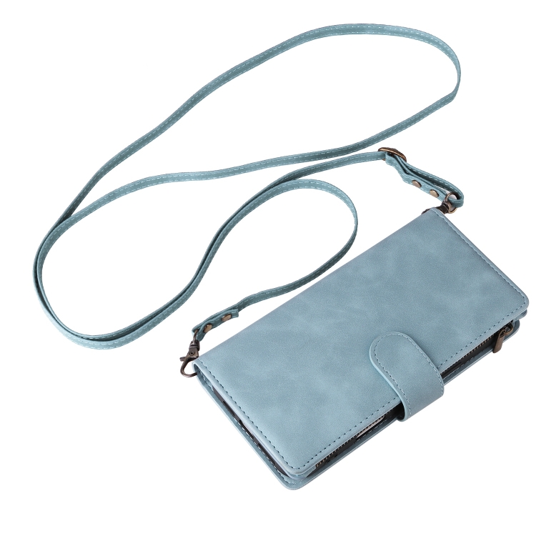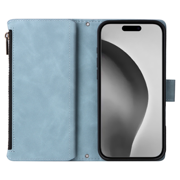 Funda de Cuero con Cremallera y Ranura para Múltiples Tarjetas para iPhone 16 Pro Max (Azul Claro)