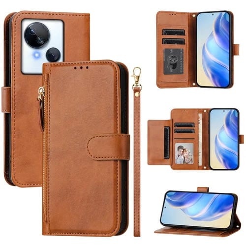 Funda de Cuero con Cremallera para Tecno Spark 10 5G con Ranuras para Tarjetas (Marrón)