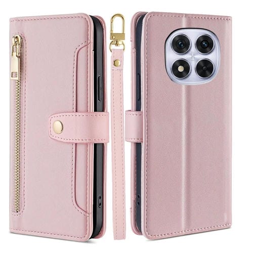 Funda de Cuero con Textura de Oveja para Redmi Note 14 Pro 5G, con Cierre Cruzado y Billetera (Rosa)