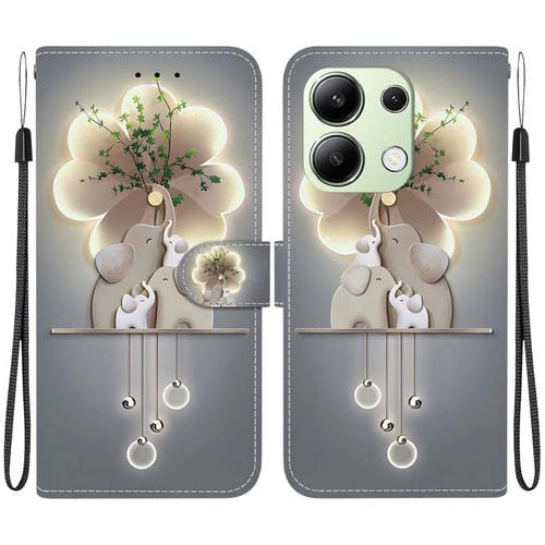 Funda de Cuero con Dibujo de Colores y Textura de Cristal Global para Redmi Note 13 4G (Elefantes)
