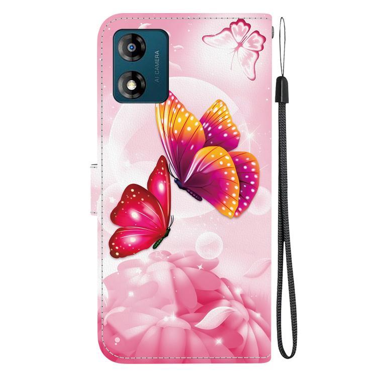 Funda de Cuero para Motorola Moto E13 con Dibujo de Colores y Textura de Cristal (Mariposas Rosas)