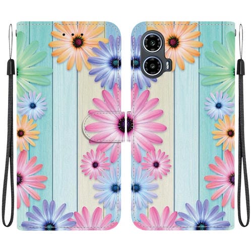 Funda de Cuero para Motorola Moto G34 5G con Dibujo de Colores y Textura de Cristal (Girasoles)