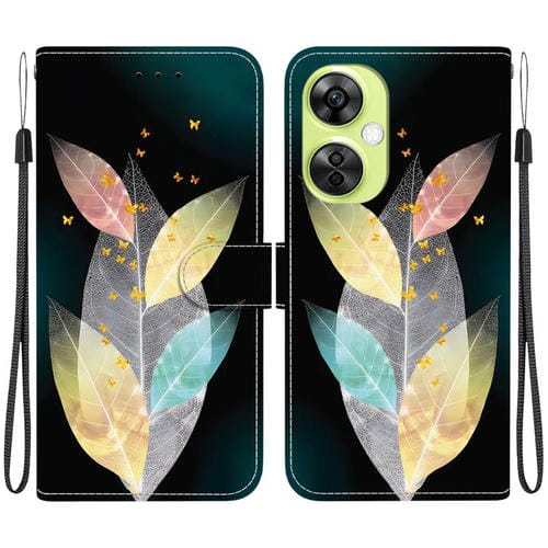 Funda de Cuero con Dibujo y Textura de Cristal para OnePlus Nord Ce 3 Lite/N30 (Hojas de Colores)