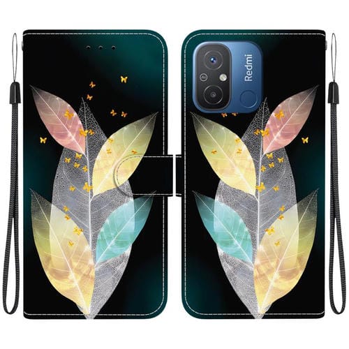 Funda de Cuero con Dibujo de Colores y Textura de Cristal para Redmi 12C/11A (Hojas de Colores)