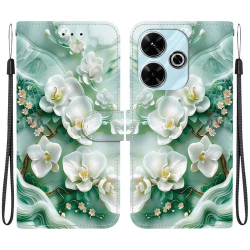 Funda de Cuero con Dibujo de Colores y Textura de Cristal para Redmi 13 4G/Poco M6 (Flores de Jade)