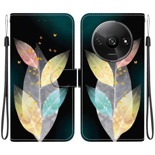 Funda de Cuero con Dibujo de Colores y Textura de Cristal para Redmi A3 (Hojas de Colores)