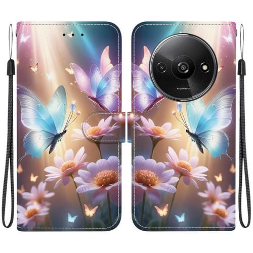 Funda de Cuero con Dibujo de Colores y Textura de Cristal para Redmi A3 (Mariposa, Amor y Flores)