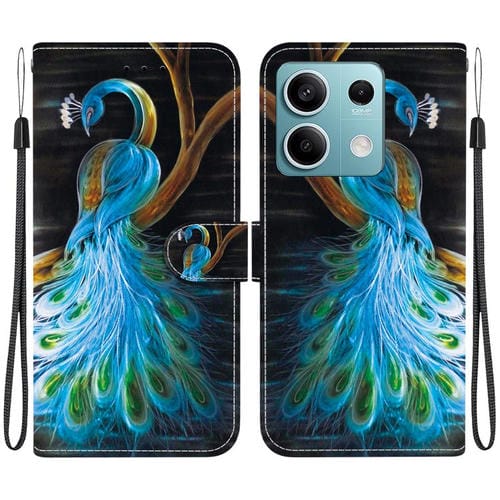 Funda de Cuero con Dibujo de Colores y Textura de Cristal para Redmi Note 13 5G (Pavo Real)