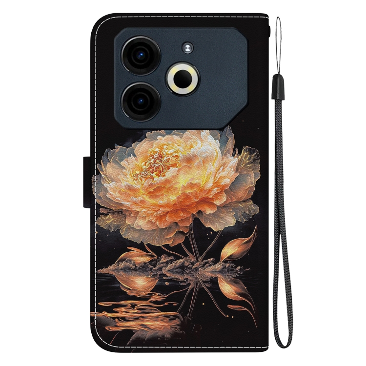 Funda de Cuero para Tecno Pova 6 Neo con Dibujo de Colores y Textura de Cristal (Peonía Dorada)