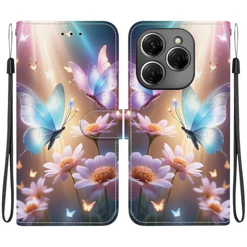 Funda de Cuero para Tecno Spark 20 Pro con Dibujo de Colores y Textura de Cristal (Mariposa, Amor y Flores)