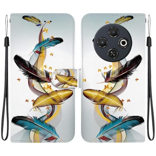 Funda de Cuero para Tecno Spark 30C con Dibujo de Colores y Textura de Cristal (Plumas de Mariposa Doradas)