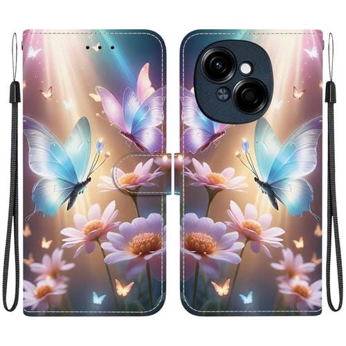 Funda de Cuero para Tecno Spark Go 1 y Pop 9 Pro con Dibujo de Colores y Textura de Cristal (Mariposa, Amor y Flores)