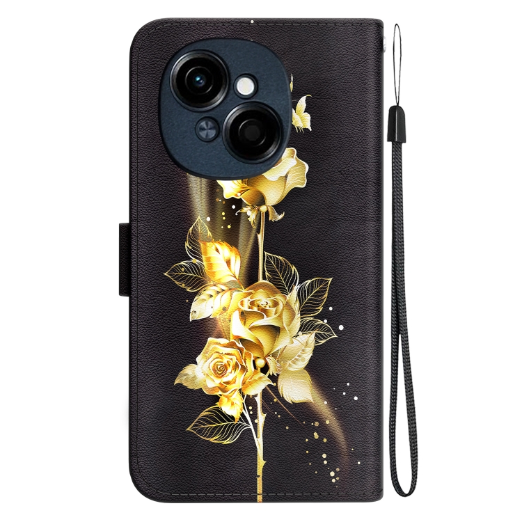 Funda de Cuero para Tecno Spark Go 1 y Pop 9 Pro con Dibujo de Colores y Textura de Cristal (Mariposa Dorada y Rosa)