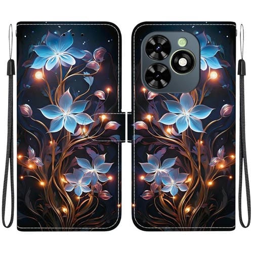 Funda de Cuero para Tecno Spark Go 2024/20C/Pop 8 con Dibujo de Colores y Textura de Cristal (Flor de Linterna Pequeña)