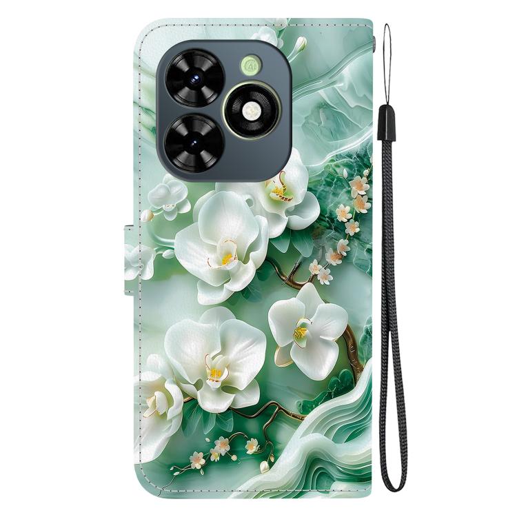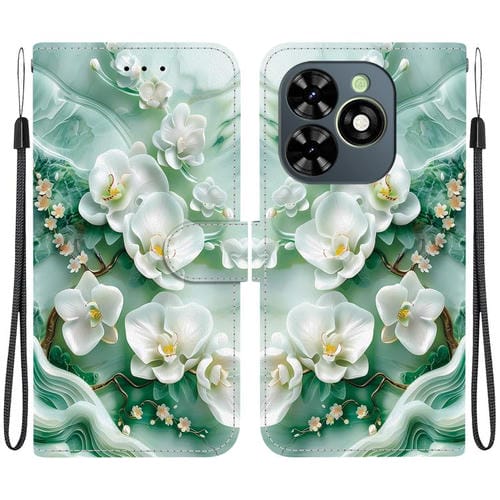 Funda de Cuero para Tecno Spark Go 2024/20C/Pop 8 con Dibujo de Colores y Textura de Cristal (Flores de Jade)