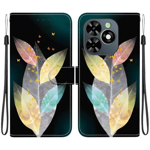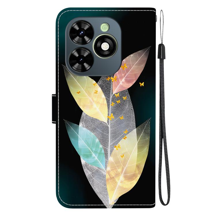 Funda de Cuero con Dibujo y Textura de Cristal para Tecno Spark Go 2024/20C/Pop 8 (Hojas de Colores)