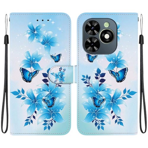 Funda de Cuero para Tecno Spark Go 2024/20C/Pop 8 con Dibujo de Colores y Textura de Cristal (Mariposas Azules)