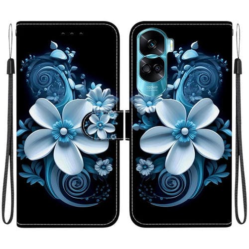 Funda de Cuero con Dibujo y Textura de Cristal para Honor 90 Lite (Orquídea Negra)