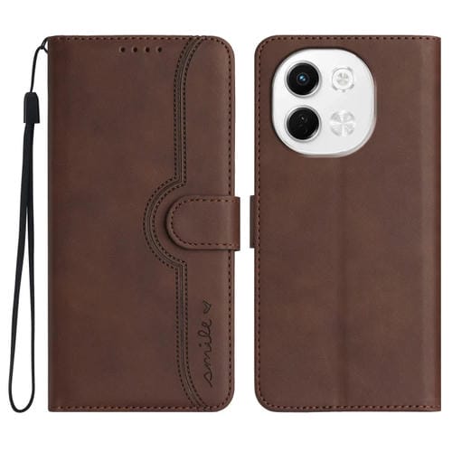 Funda de Cuero para Tecno Pova 6 Neo 5G y Spark 30 5G con Diseño de Corazón (Marrón)