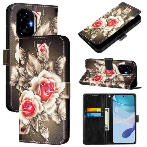 Funda de Cuero con Diseño para Teléfono Honor 300 (Rosas Sobre Negro)