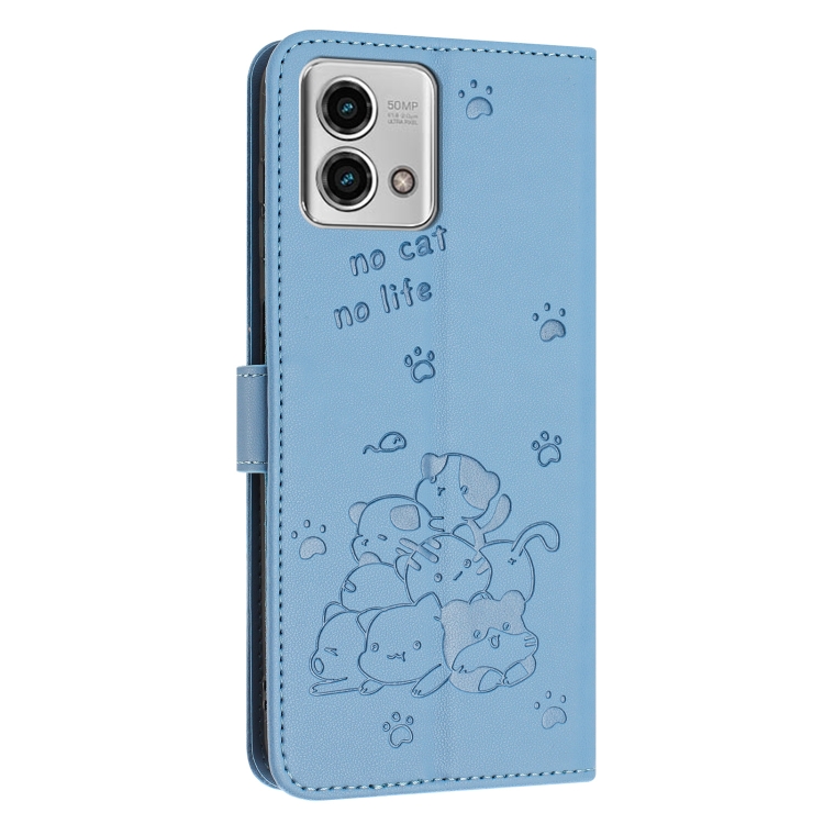 Funda de Cuero con Diseño de Gatito en Relieve para Motorola Moto G Stylus 2023 4G con Cordón (Azul)
