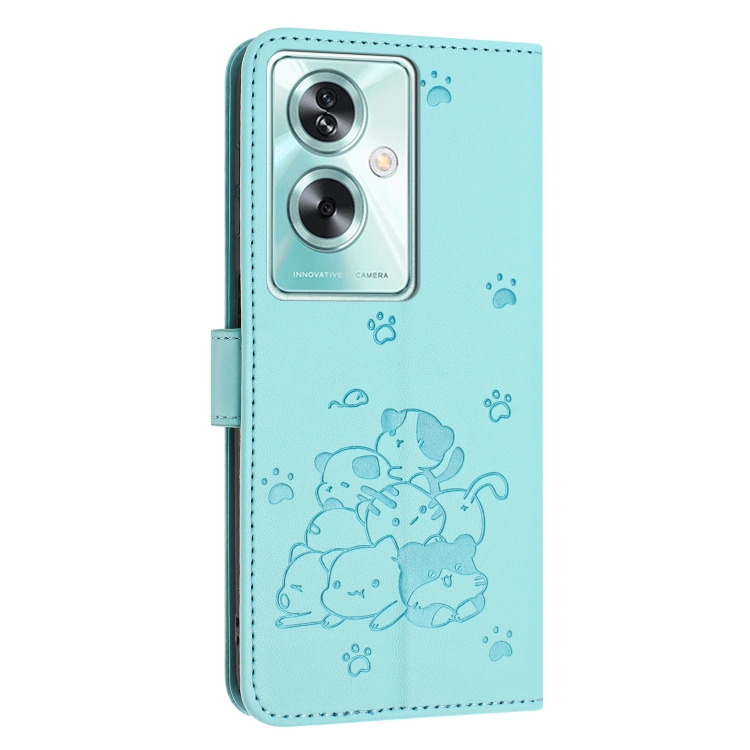 Funda de Piel con Diseño de Gatito En Relieve para Oppo A79 5G con Cordón (Verde Menta)