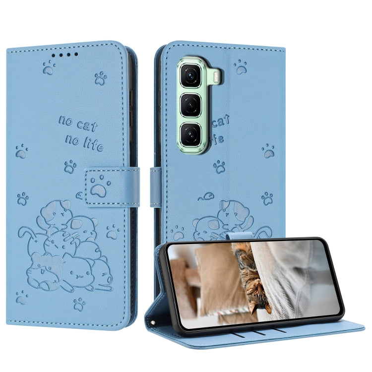 Funda de Cuero Infinix Hot 50 Pro+ 4G con Diseño de Gatito en Relieve y Cordón (Azul)